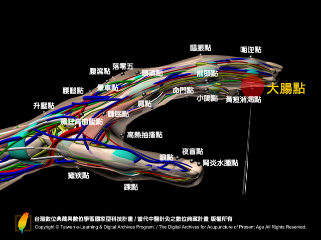 本針灸資料來自於『台灣國科會課題,當代中醫針灸的數位典藏計畫』,計畫主持人為陳擎文老師,原始資料網址:http://tung.dwu.edu.tw/acupuncture,任何商業機構或個人不得以任何形式出版或發行本網站內容,或進行其它的商業行為。