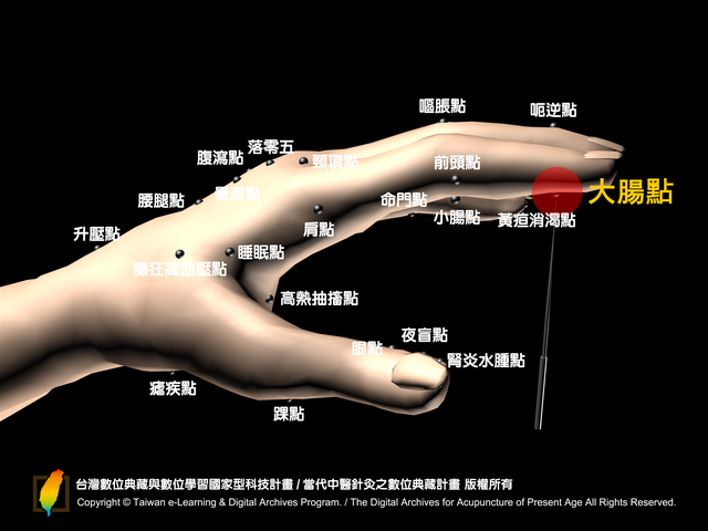 【《手針新療法》‧大腸點】:中國大陸朱振華‧《手針新療法》,大腸點: