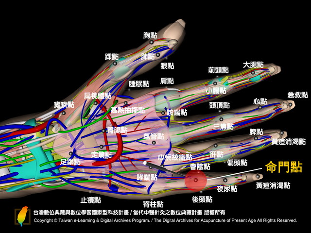 【臨床配伍】:糖尿病: (十四經穴)陽池。 (手針新穴)腎點、命門點、小腸點、肝點、偏頭點、後頭點。 |