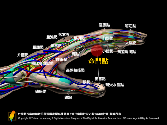 【臨床配伍】:尿色變、小便不利: (手針新穴)腎點、命門點、肝點、脾點、小腸點。 |